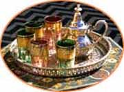 Boissons marocaines rafraîchissantes : thé à la menthe, jus d'orange, smoothies aux dattes.